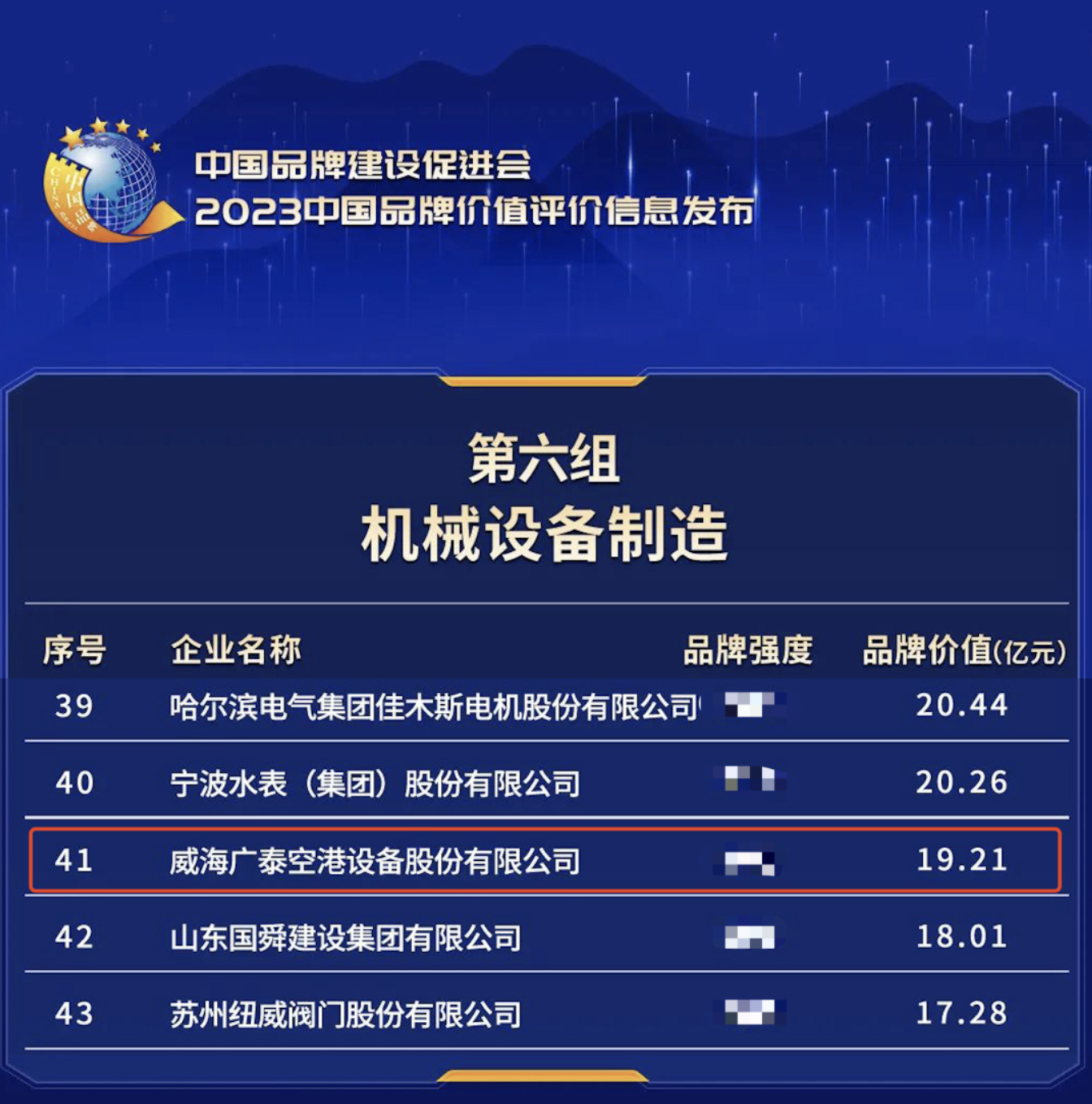 2023年5月11日,新華社、浙江省人民政府、中國品牌建設(shè)促進會、中國資產(chǎn)評估協(xié)會等單位在浙江德清聯(lián)合發(fā)布“2023中國品牌價值評價信息”。威海廣泰空港設(shè)備股份有限公司(簡稱“威海廣泰”)在此次發(fā)布評價機械設(shè)備制造組中,品牌價值獲評為19.21億元。“中國品牌價值評價信息發(fā)布”…