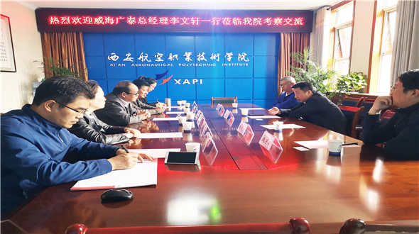 10月18日上午,威海廣泰空港設(shè)備服務(wù)有限公司總經(jīng)理、山東廣大航空地面服務(wù)有限責(zé)任公司董事長李文軒,威海廣泰空港設(shè)備事業(yè)部銷售副總監(jiān)陳述武,廣大采購部經(jīng)理魏子奇,廣大駐西北事業(yè)部經(jīng)理曾旭一行前往西安航空職業(yè)技術(shù)學(xué)院與西安航空職業(yè)技術(shù)學(xué)院副院長張敏華,汽車工程學(xué)院院長…