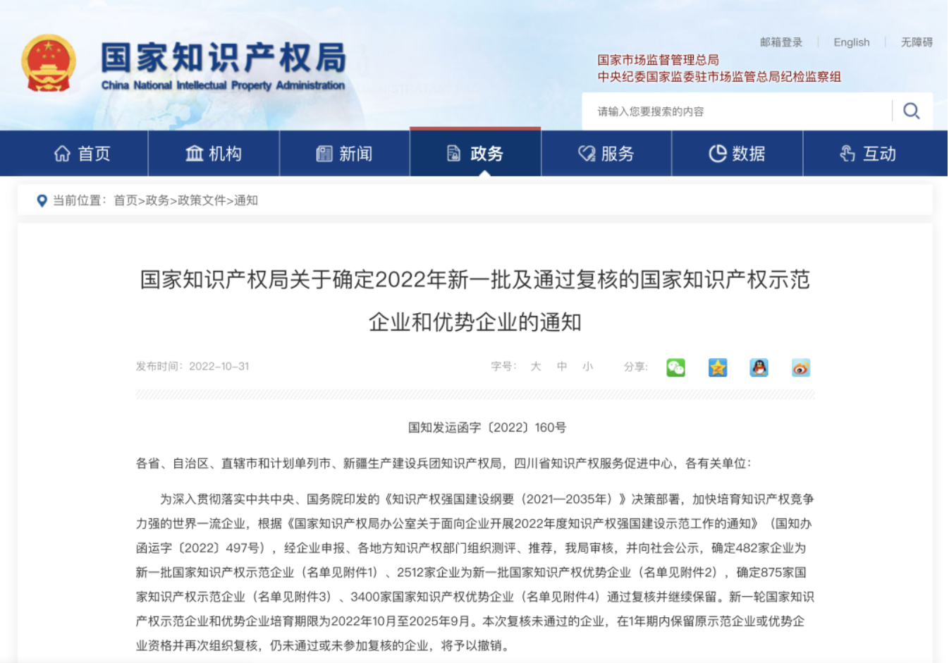 近日,國(guó)家知識(shí)產(chǎn)權(quán)局關(guān)于確定2022年新一批及通過(guò)復(fù)核的國(guó)家知識(shí)產(chǎn)權(quán)示范企業(yè)和優(yōu)勢(shì)企業(yè)的通知,威海廣泰空港設(shè)備股份有限公司(以下簡(jiǎn)稱“威海廣泰”)喜獲“國(guó)家知識(shí)產(chǎn)權(quán)優(yōu)勢(shì)企業(yè)”稱號(hào)。為貫徹落實(shí)《知識(shí)產(chǎn)區(qū)強(qiáng)國(guó)建設(shè)綱要(2021-2035年)》和《“十四五”國(guó)家知識(shí)產(chǎn)權(quán)保護(hù)和運(yùn)用…