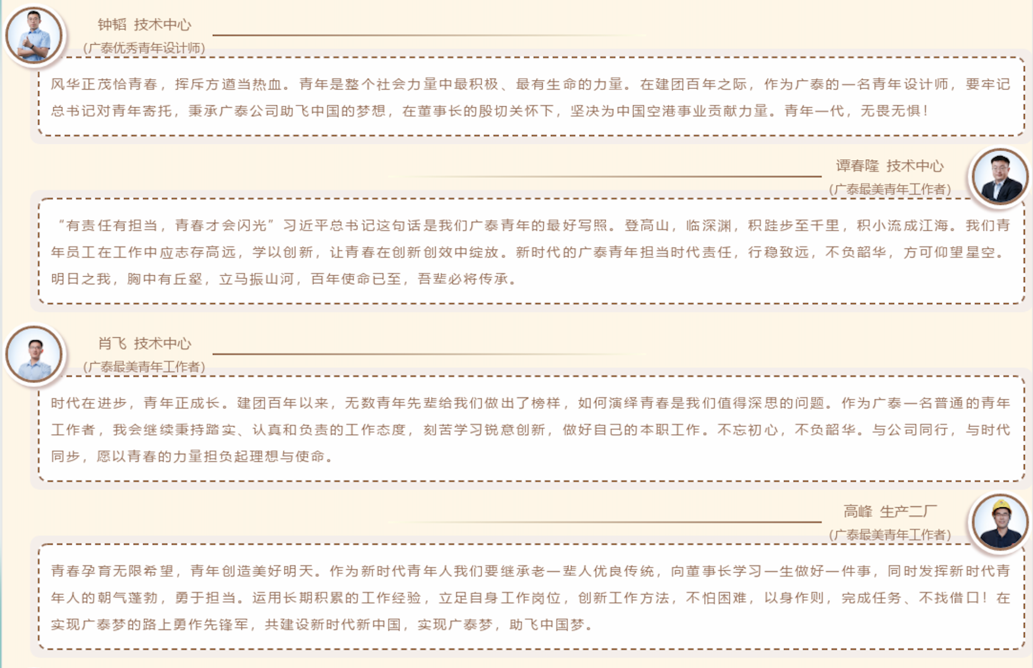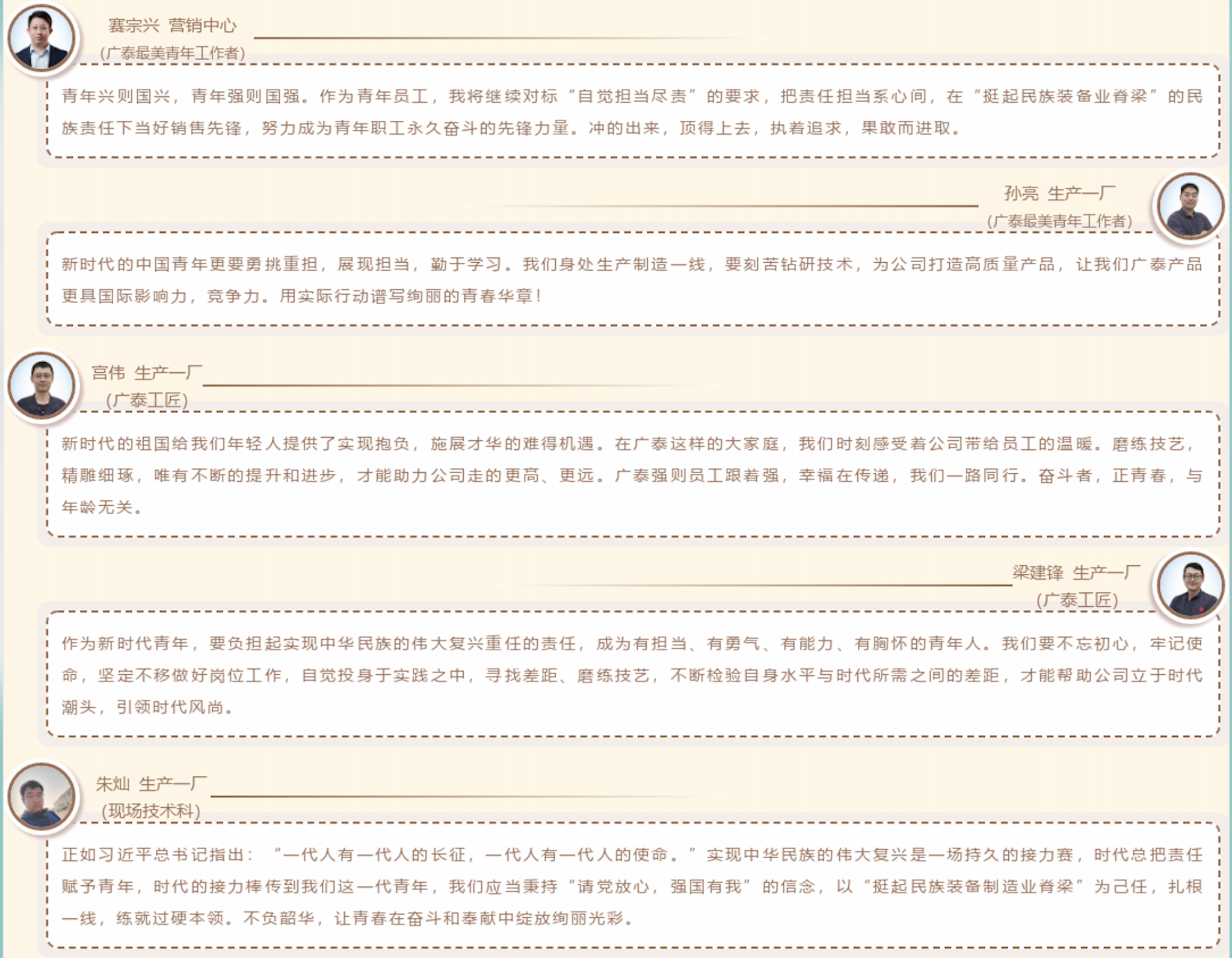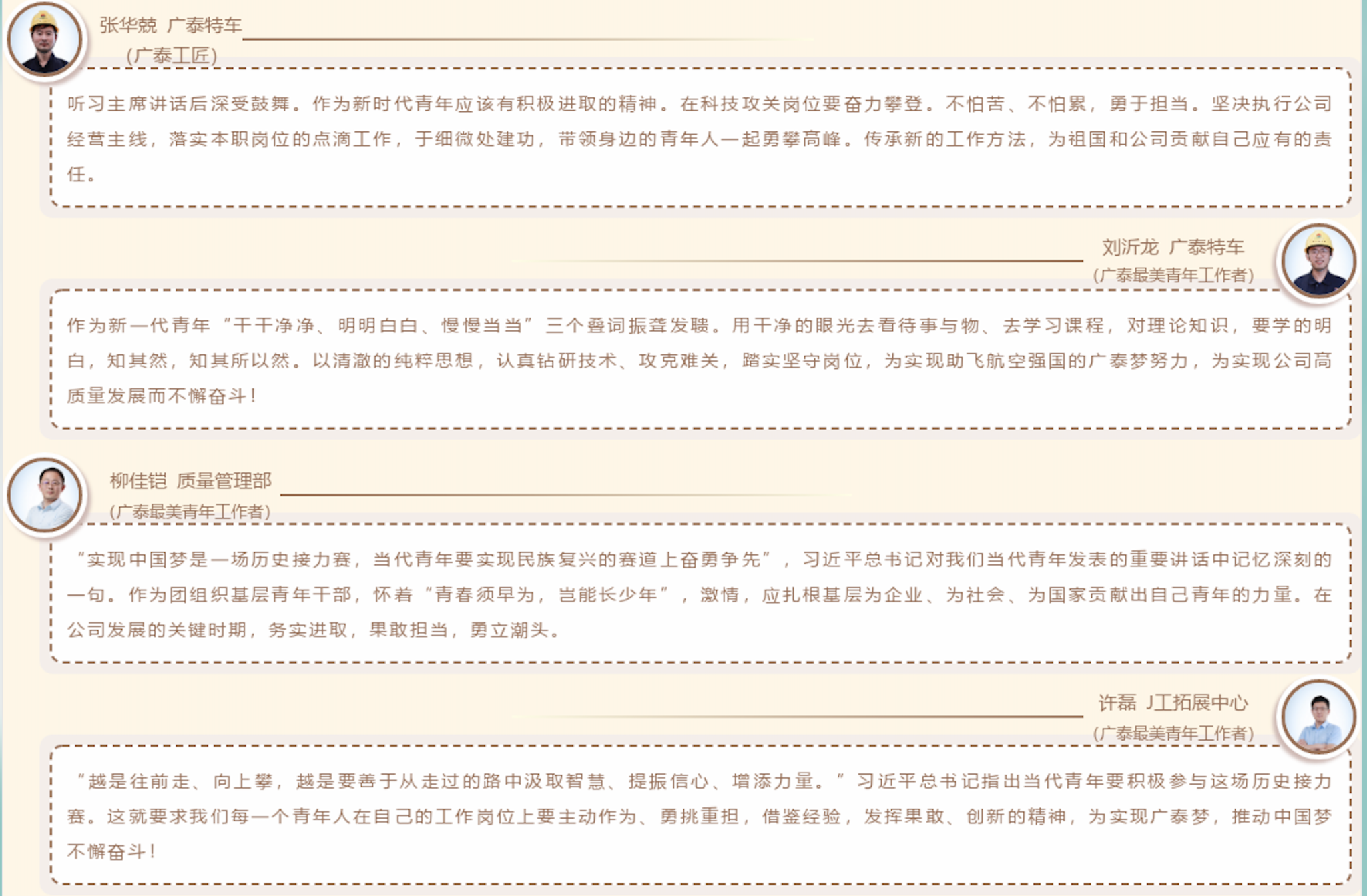 威海廣泰青年員工熱議習近平總書記在慶祝中國共產(chǎn)主義青年團成立100周年大會上的重要講話精神