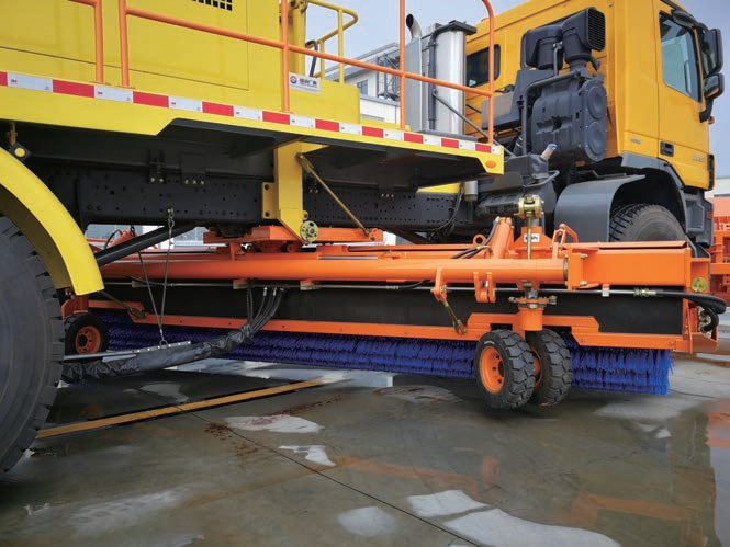該類設(shè)備是通過(guò)向機(jī)場(chǎng)跑道及機(jī)場(chǎng)作業(yè)區(qū)的道面噴灑防(除)冰液,來(lái)達(dá)到使機(jī)場(chǎng)道面不結(jié)冰的目的,進(jìn)而保障機(jī)場(chǎng)的正常使用。主要由汽車底盤、液路系統(tǒng)、液壓系統(tǒng)、電氣控制系統(tǒng)、擺臂系統(tǒng)、液罐系統(tǒng)等組成。
