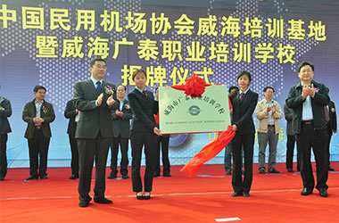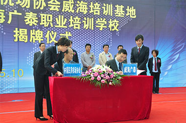 2015年10月,威海廣泰與中國民用機場協(xié)會聯(lián)合在威海廣泰職業(yè)培訓學校成立“中國民用機場協(xié)會威海培訓基地”,整合優(yōu)勢資源,互利共贏,共同打造空港地面設備從業(yè)人員職業(yè)化培訓平臺,進一步拓寬了師資渠道和培訓力量,提高培訓質(zhì)量和實效性,對推進我國機場從業(yè)人員資質(zhì)能力培訓的系統(tǒng)化、標準化,具有重要意義。